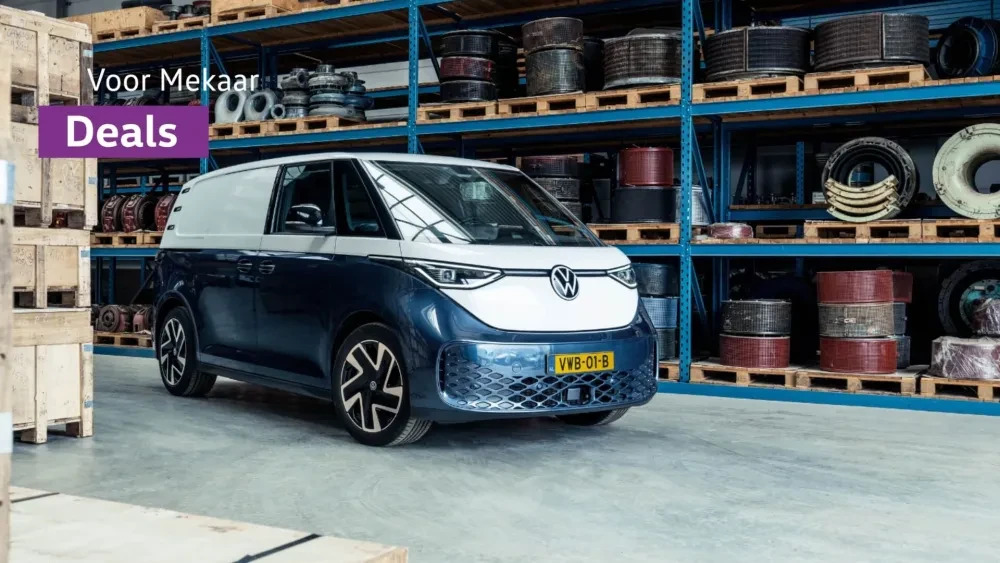 Je rijdt de ID. Buzz nu extra voordelig tijdens onze Voor Mekaar Deals, want je profiteert van € 2.000 tijdelijk voordeel*** op alle uitvoeringen van de ID. Buzz of een extra scherp Private Lease tarief vanaf € 569 p/m*****. Bekijk snel deze Voor Mekaar Deal.