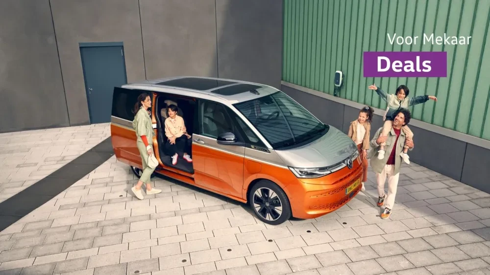 Je rijdt de Multivan eHybrid nu extra voordelig tijdens onze Voor Mekaar Deals, want je profiteert van € 2.000 tijdelijk voordeel*** op alle uitvoeringen van de Multivan eHybrid of een extra scherp Private Lease tarief vanaf € 989 p/m*****. Bekijk snel deze Voor Mekaar Deal.
