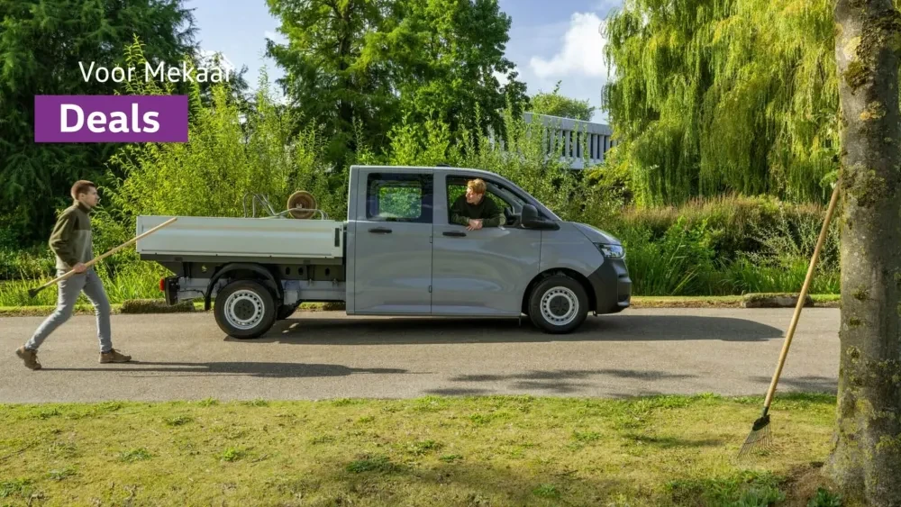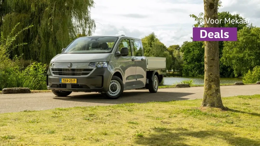 Je rijdt de e-Transporter Pick-up Dubbele Cabine nu extra voordelig tijdens onze Voor Mekaar Deals, want je profiteert van € 6.000 tijdelijk voordeel* op alle uitvoeringen van de e-Transporter Pick-up Dubbele Cabine of een extra scherp Financial Lease tarief vanaf € 479 p/m**. Bekijk snel deze Voor Mekaar Deal.