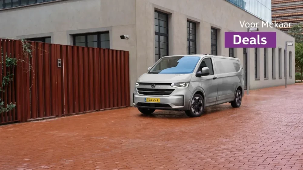 Je rijdt de Transporter nu extra voordelig tijdens onze Voor Mekaar Deals, want je profiteert van € 4.000 tijdelijk voordeel* op alle uitvoeringen van de Transporter of een extra scherp Financial Lease tarief vanaf € 459 p/m**. Bekijk snel deze Voor Mekaar Deal.