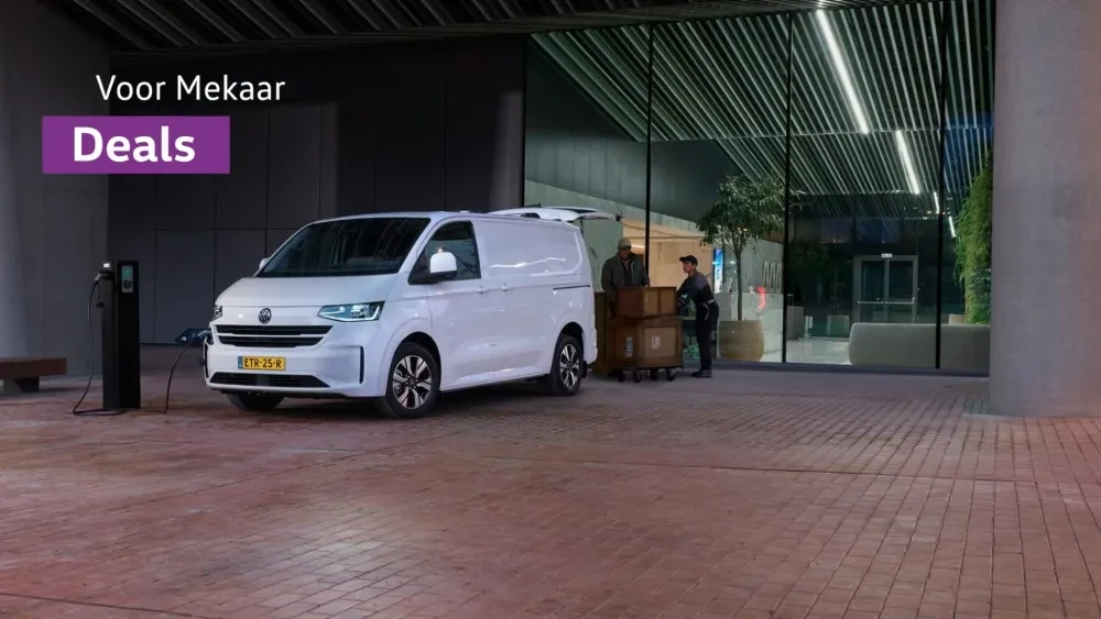 *** Het Voor Mekaar Deals voordeel van € 2.000 incl. btw is van toepassing op de Caddy Kombi eHybrid, Multivan eHybrid, ID. Buzz, e-Transporter Kombi (met uitzondering van e-Transporter Kombi Taxi), Transporter Kombi eHybrid, e-Caravelle & Caravelle eHybrid, geldig t/m 31 maart 2026. Uitsluitend bij levering (tenaamstelling 1b) uiterlijk 30 december 2026.